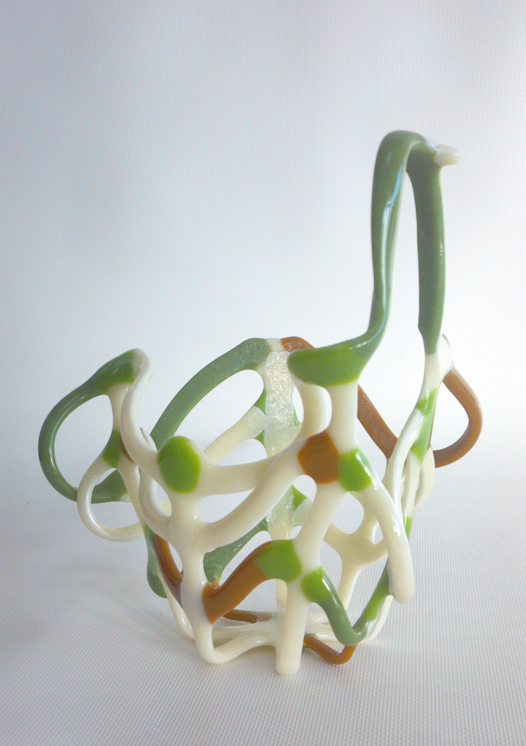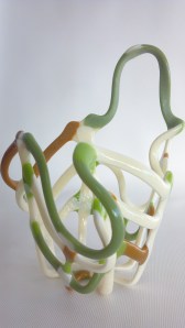 Recently, I experimented with some glow in the dark glass frit, so when I heard about this exhibit I jumped on the chance to use it some more! Here are pictures of my fused glass triptych entitled “Trichromatic Triptych” in natural light, under blacklight, and under no lighting conditions.